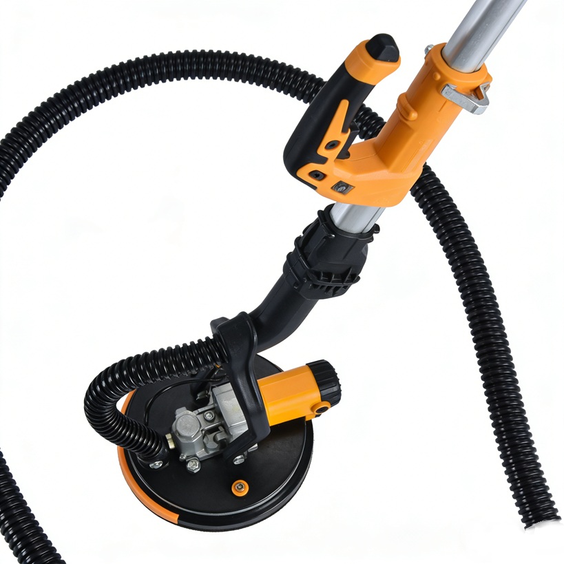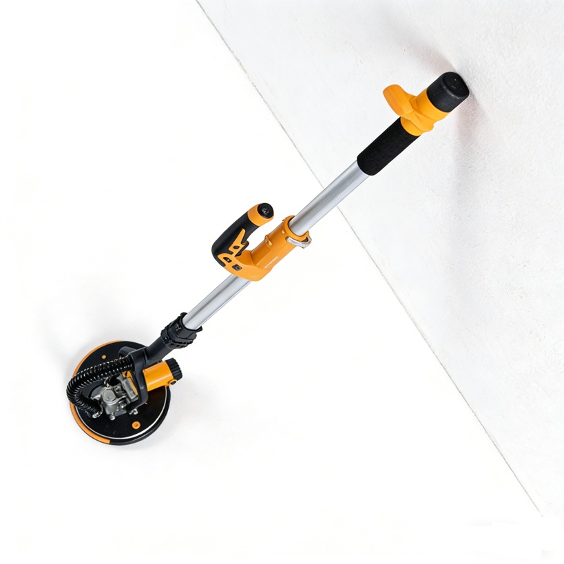 This sander is packed with user-friendly features, including a built-in double-layer LED strip light that illuminates the work area, making it easy to spot and correct imperfections. The adjustable length (up to 180cm) allows you to comfortably reach high ceilings, and the pivoting sanding head ensures constant contact with the surface. For a cleaner work environment, simply connect the included dust hose to your workshop vacuum.